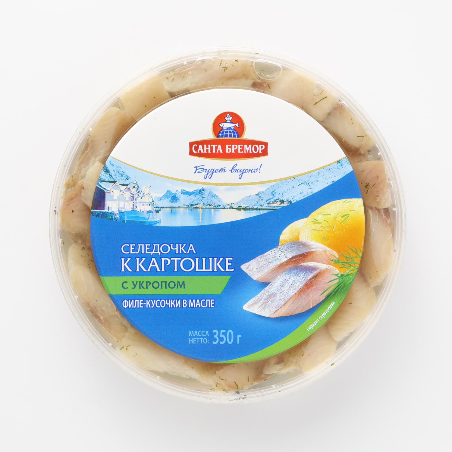 Atlantic herring filet lightly salted with dill from the producer "Santa Bremor" in a package of 350 g. Delicate and soft pieces of fish fillet are oiled with vegetable oil and added with a pleasant fresh taste of green dill. This Atlantic herring fillet is a perfect accompaniment to a side dish of boiled potatoes and also serves as a tasty snack to alcoholic beverages.