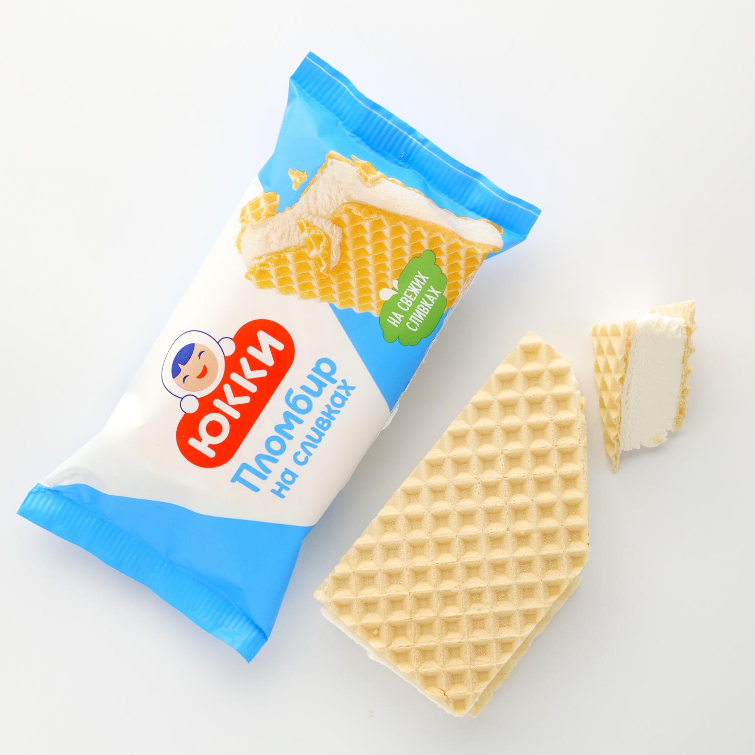 A classic vanilla sandwich-shaped ice cream from the " YUKKI" brand is made with fresh cream. The package volume is 80 g.