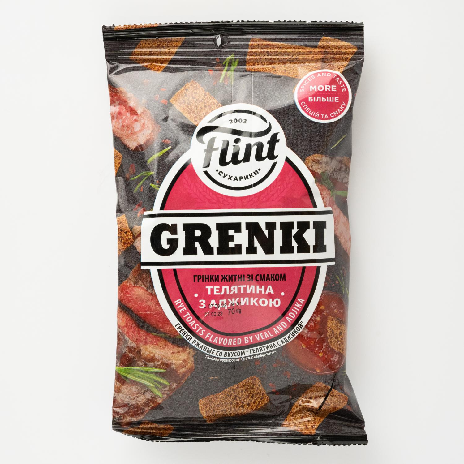Rye croutons "Flint" veal with adjika - a new interesting taste with a hint of spice. And what a delicious aroma the croutons have!