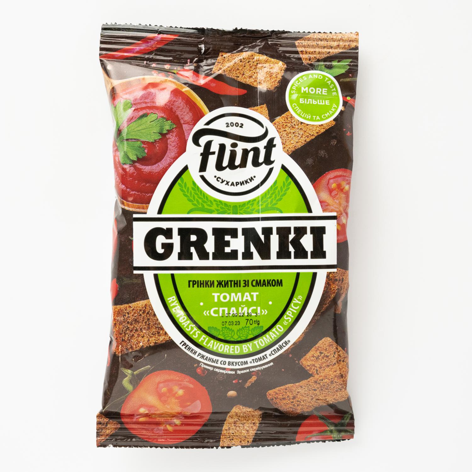 Rye croutons "Flint" spicy tomato - a combination of spiciness and piquancy with an unparalleled crunch. Some spice for a real spicy sensation! Bright flavor to match the bright taste.