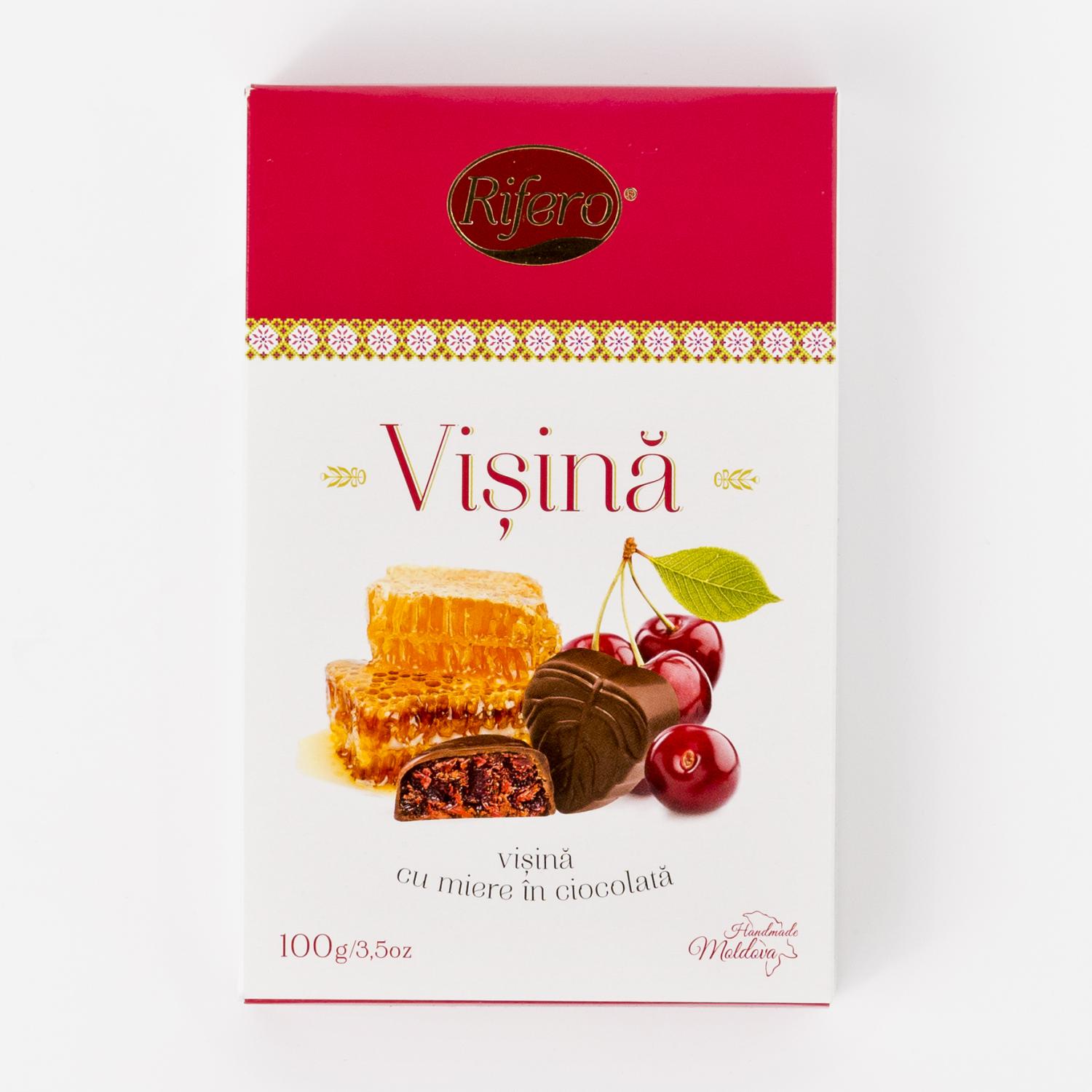 Candied cherries in chocolate "Rifero" has a unique sweet and sour taste of natural cherries, covered with the thinnest layer of dark chocolate.
