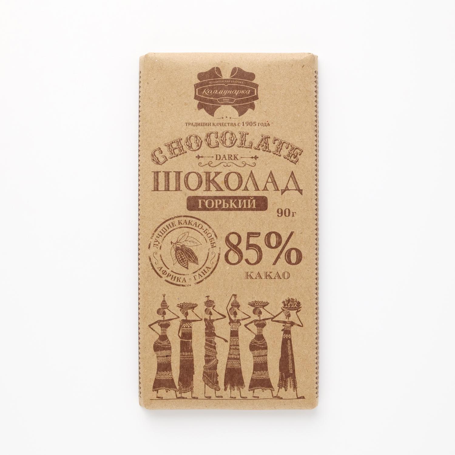 Bitter dessert chocolate from the factory "Kommunarka" with cocoa content of 85% has a rich flavor of cocoa beans and a bright chocolate flavor with hints of vanilla.