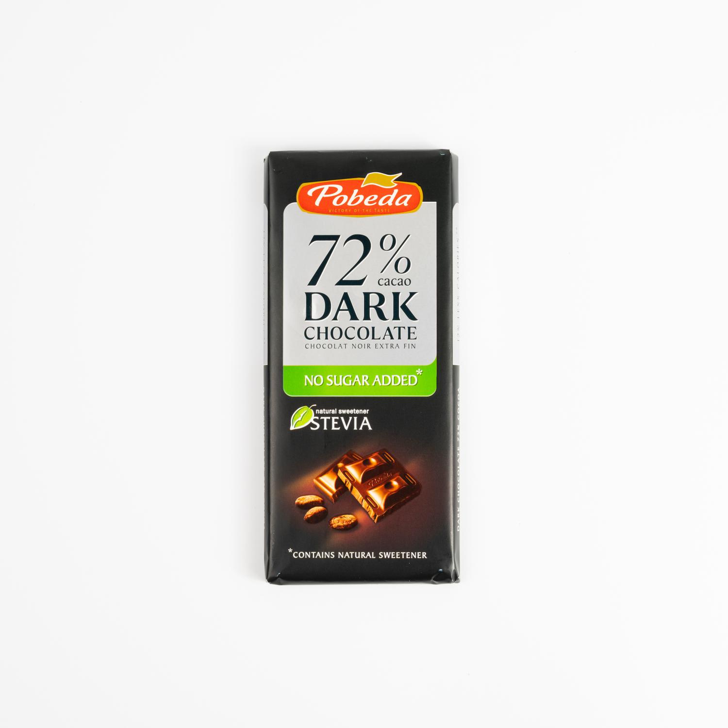 Sugar-free chocolate " Pobeda" with a cocoa content of 72% is an exclusive low-calorie chocolate with the addition of stevia, also called honey herb. This chocolate is suitable for all those who follow a healthy diet.