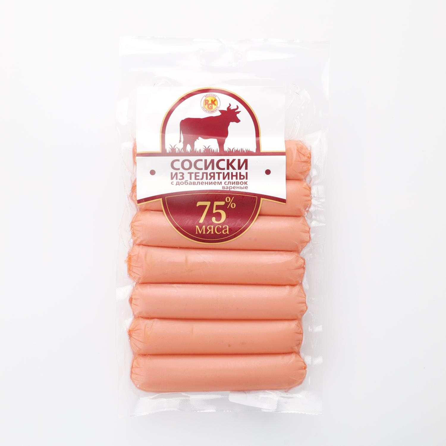 Beef sausages are a natural meat product with a rich flavor and aroma. Boiled veal sausages with the addition of cream "RGK" have a light creamy hue. They are perfect with absolutely any side dish. You can serve sausages with potatoes, cereal, pasta, fry them in a pan or add them to pizza. Whatever you're up to, RGK sausages will make your meal unforgettable. 7 sausages in a pack.