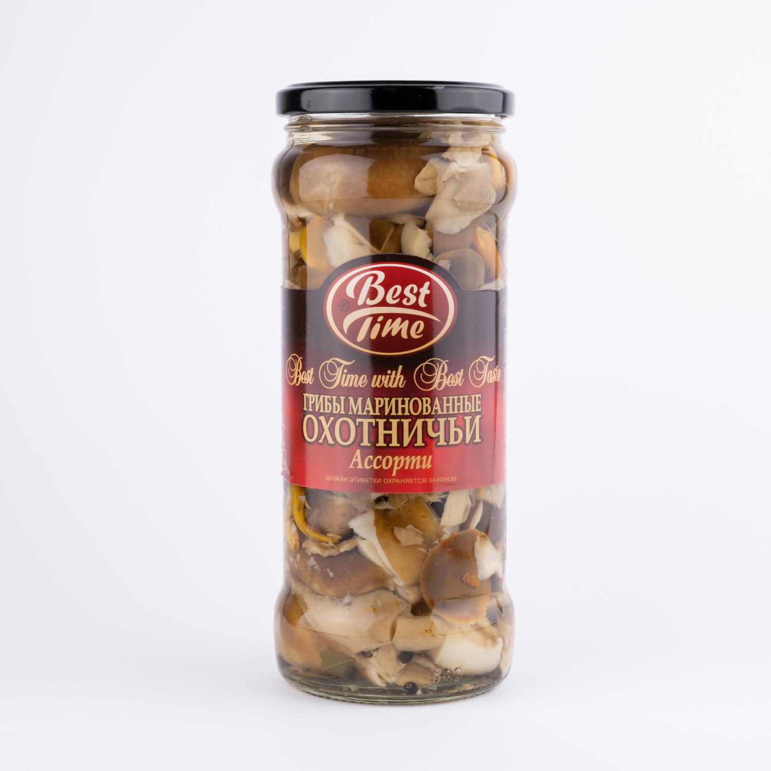 Assorted wild forest mushrooms from the brand "Mushroomoff" is a combination of oyster mushrooms, russula and honey fungus mushrooms, seasoned with a tasty, spicy marinade. Mushroom assortment is great as a cold appetizer, which can be seasoned with vegetable oil, add chopped herbs and garlic. In addition, marinated mushrooms can be used for salads, sandwiches and second courses. The volume of the jar is 580 ml.
