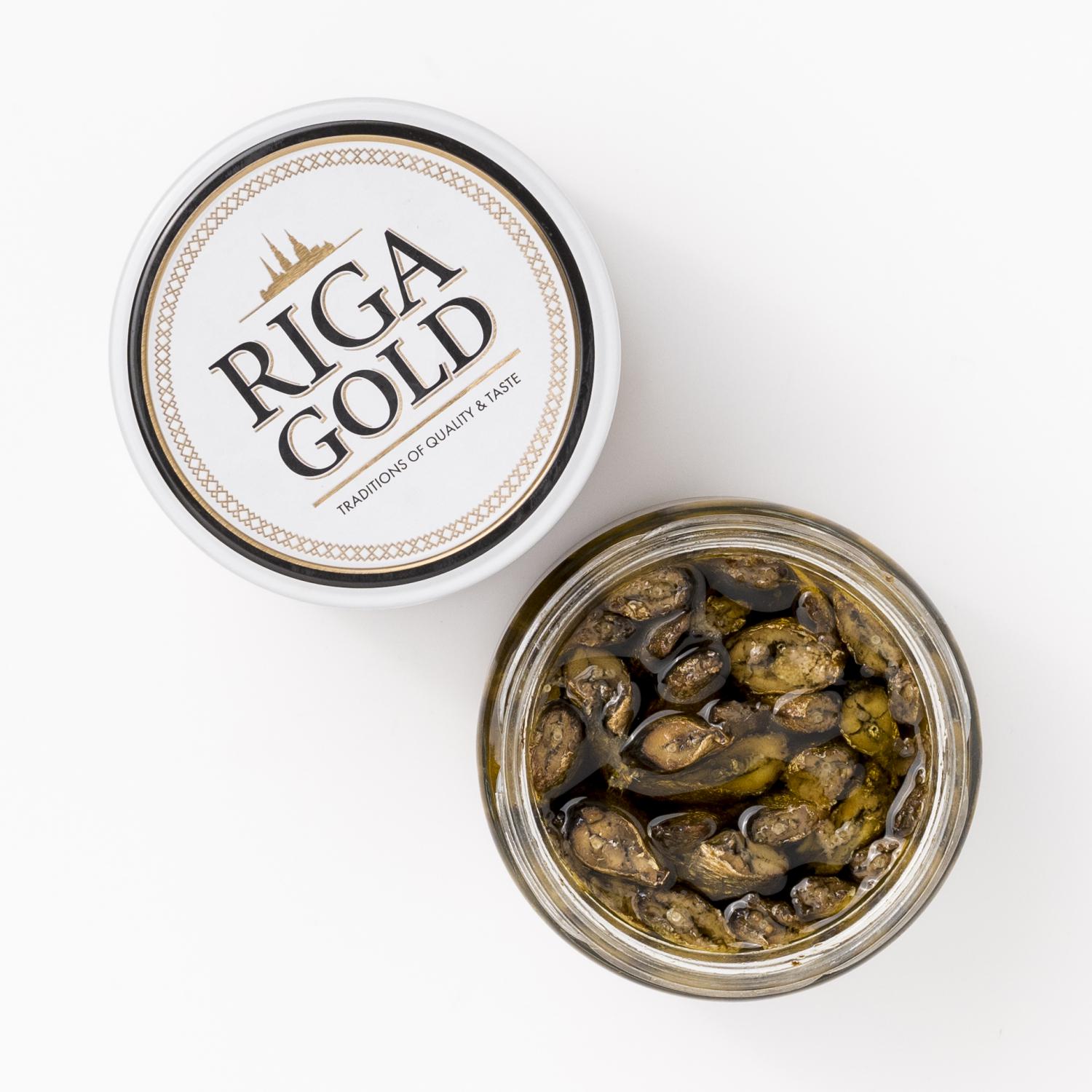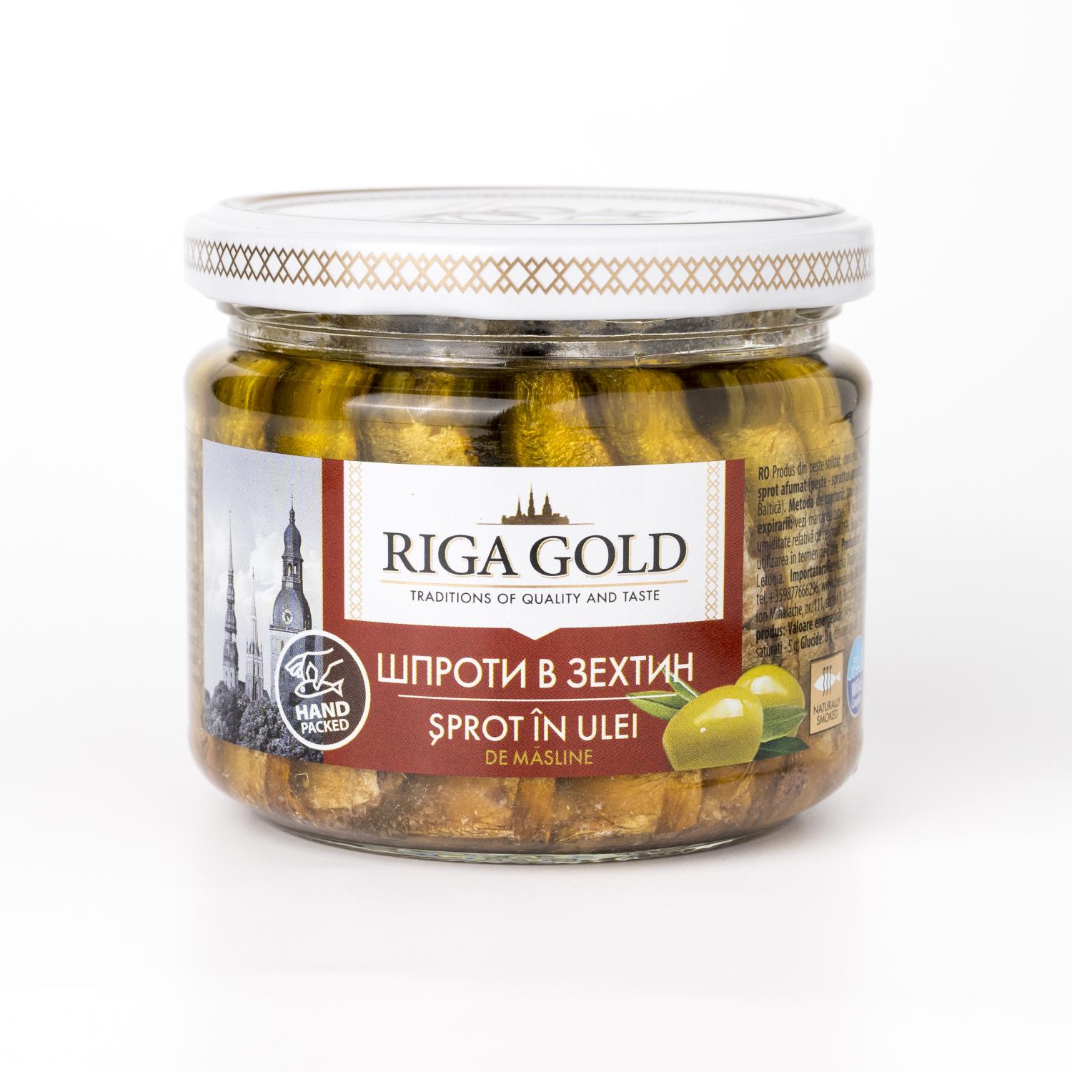 Sprats in olive oil "Riga gold" - is a golden color large smoked sprats, which are neatly stacked in a jar. All fish are thick, whole, without any defects. Sprats in olive oil "Riga gold" is a high quality product of excellent taste. They have been produced in Latvia since the 19th century. Bright characteristic flavor of sprats is familiar to all of us and we have loved it for a long time! When there is a slice of bread with a thin layer of butter on the table, on which the sprats are placed, it is simply impossible to resist!