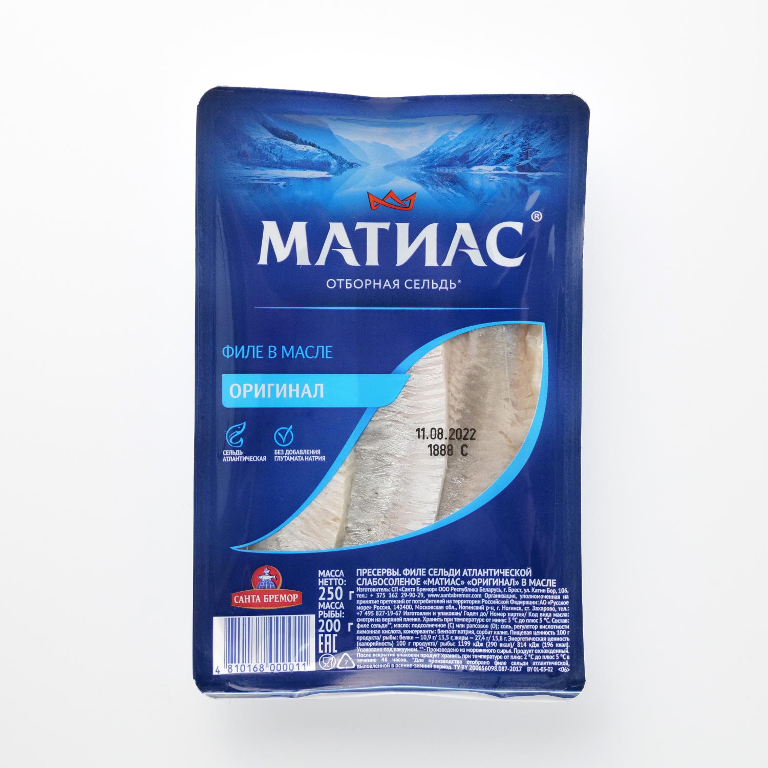 „File de hering atlantic” într-o cantitate de 250 g de la producătorul „Matias” reprezintă niște fileuri alungite de hering, asezonate cu ulei vegetal aromat. Peștele delicat și suculent are un gust moderat sărat și ușor picant. Acesta nu are adaos de glutamat monosodic și este potrivit atât pentru gustările cu vodcă la masa festivă, cât și pentru a fi adăugat în salate.