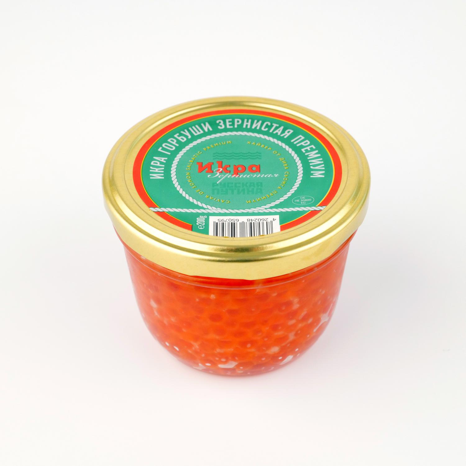 Icrele de somon Gorbusha premium „Erste caviar” se remarcă printr-un gust moale, rafinat. Toate boabele au aceeași dimensiune, sunt elastice și au o coajă subțire. Sunt servite cu o bucată de pâine proaspătă aromată, un strat subțire de unt și o crenguță de pătrunjel. Volumul borcanului este de 200 g.