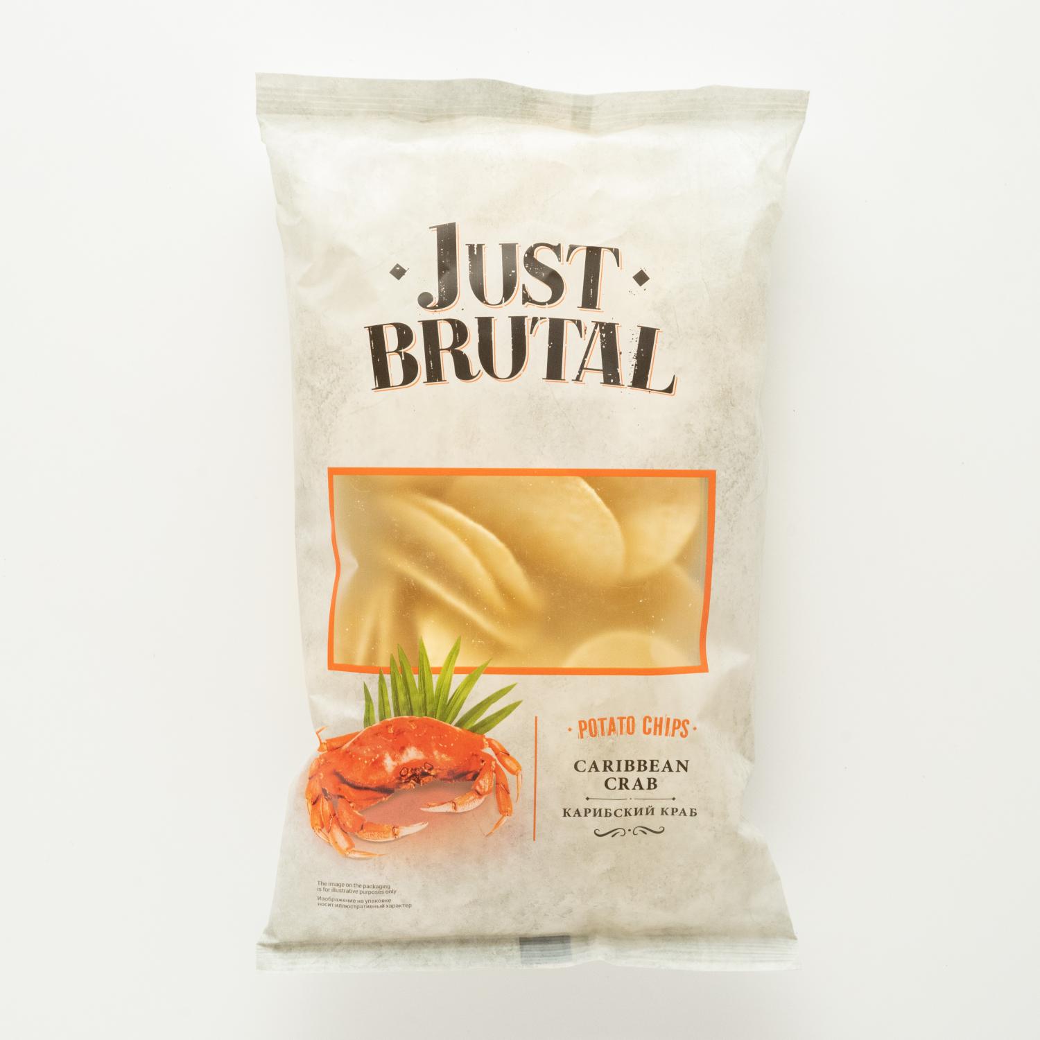 Caribbean Crab Chips de la marca comercială „Just brutal” pentru fanii crocantului și a gustului fructelor de mare. Chipsuri perfect rotunde și moderat groase, cu aromă bogată. Un snack ideal pentru întâlniri la un pahar de bere sau pentru vizionarea unor filme noi interesante.