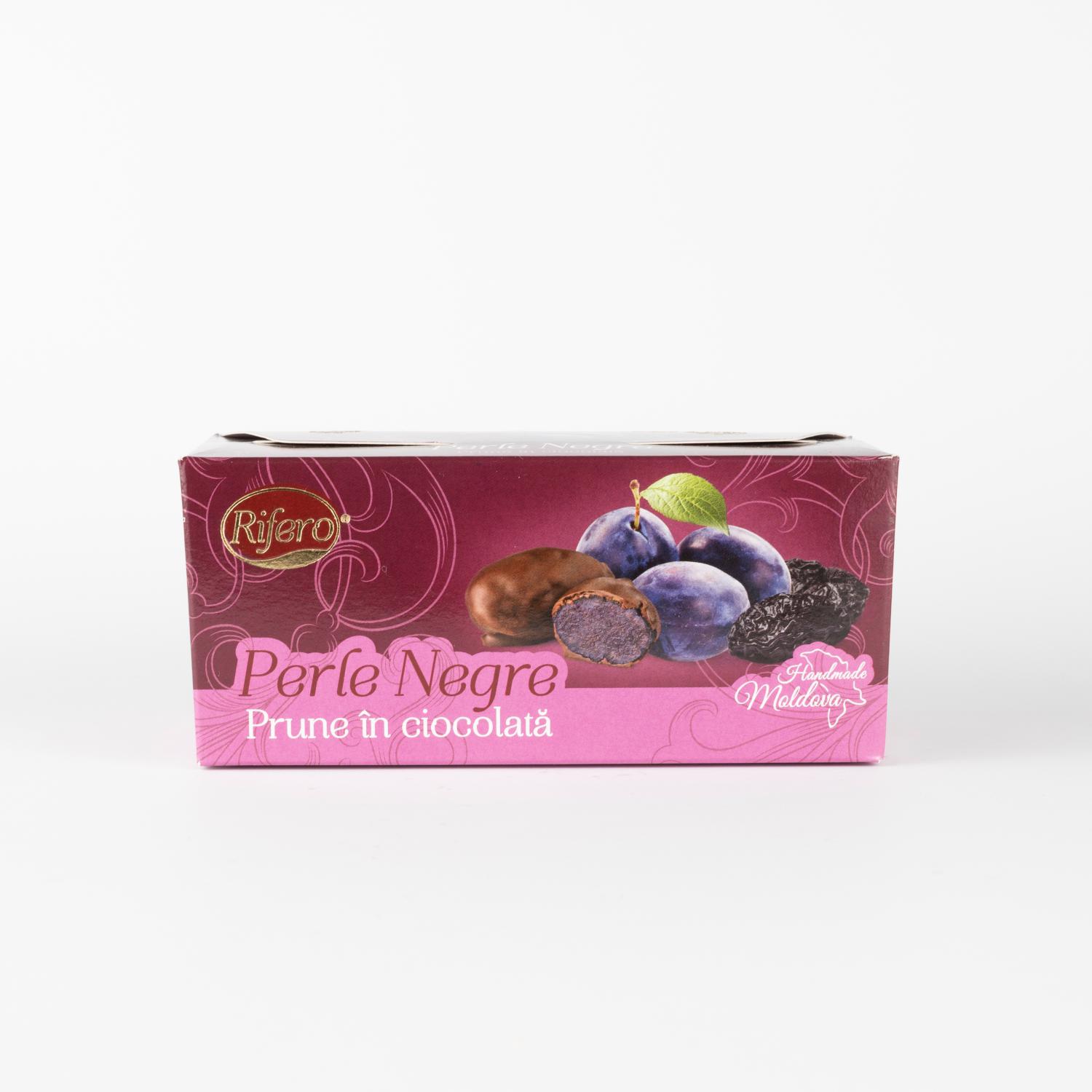 "Prune in ciocolata" - bomboane făcute manual de la producatorul moldovean Rifero. Prune uscate întregi învelite în ciocolată. Un răsfăț perfect pentru o masa festiva de deserturi.